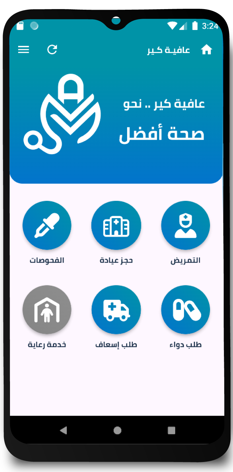 هو امتداد لخدمات عافيه كير للخدمات الطبية يهدف إلى تسهيل الوصول إلي الخدمات الصحية في مناطق السودان المختلفه بمساعدة مقدمي الخدمات الصحية من خلال الربط المباشر بين المرضي ومقدمي الخدمات. حيث يمكن للعميل طلب ممرض أو ححز عيادة أو طلب فحص معين أو دواء معين أو إسعاف من خلال التطبيق.